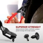 Mehanizam s oprugom pretvara mali pokret ruke u kontroliranu silu – pozicionirajte glavu, stisnite, kopča se oslobađa. Kliješta rukuju okruglim kopčama u oblogama vrata i stropu, kratki polugasti alat rukuje kvadratnim pričvršćivačima u branicima i pragovima, dugi polugasti alat doseže duboke točke u armaturi i oblogama blatobrana bez nezgodnih kutova.