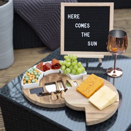 Sa svojim sklopivim dizajnom, daska vam omogućuje praktično pohranjivanje noževa ispod, omogućujući gostima da sami režu sir.