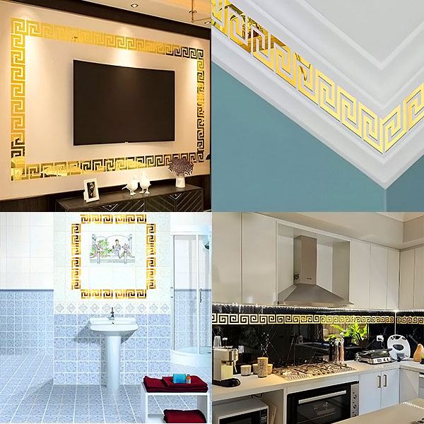 Kupaonica: Unaprijedite izgled kupaonice postavljanjem naljepnica na zidove ili oko ogledala, reflektirajući svjetlost i stvarajući prostraniji, luksuzniji dojam.