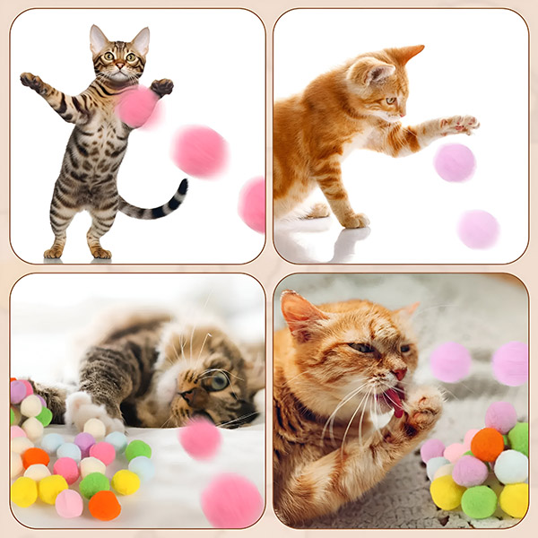 Plišane loptice ne proizvode buku, omogućujući vašoj mački da se igra bez ometanja vašeg mira. Izrađene od nefluorescentnog, postojanog i mekog plišanog materijala, osiguravaju da vaš ljubimac ostane siguran tijekom igre. Ove mekane loptice nježne su prema šapama i zubima vaše mačke, sprječavaju svaki rizik od ozljeda i osiguravaju izdržljivu, dugotrajnu upotrebu.