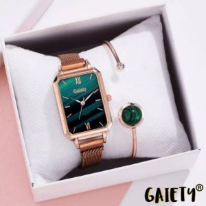 Kao dio kompleta, dobit ćete suvremeni sat u vintage stilu zajedno s prekrasnom narukvicom koja nadopunjuje sat i udobno pristaje vašem zapešću. Narukvica je podesiva za savršeno pristajanje.