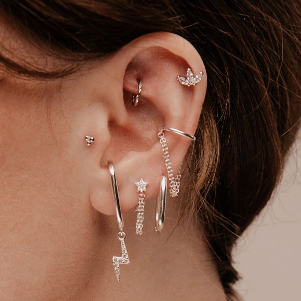 Estella je razigrana i atraktivna naušnica koja uvijek ostavlja trag. Manja zvijezda s dijamantom u sredini povezana je s donjim dijelom s dva lančića, koji su prekrasan modni detalj. Naušnica je dostupna kao jedan komad i prikladna je za kombiniranje sa svim ostalim naušnicama.