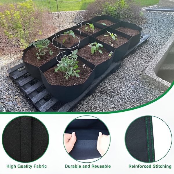 Izrađena od visokokvalitetne i zadebljane netkane tkanine, ova podignuta gredica je napravljena da traje s pojačanim šavovima. Lagana je, izdržljiva i nudi odličnu drenažu, osiguravajući dugotrajnu upotrebu.