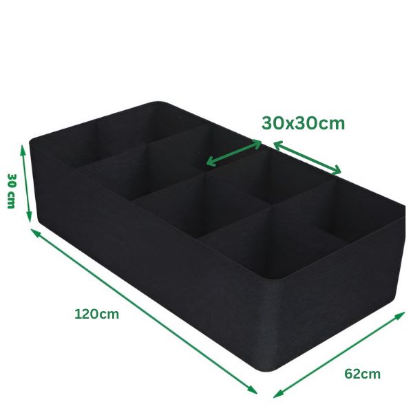 Ova podignuta vrtna gredica od tkanine dolazi s dizajnom koji sadrži 8 odjeljaka, dimenzija 120 x 62 cm s visinom od 30 cm. Savršena je za uzgoj raznih biljaka, cvijeća i povrća s dovoljnim prostorom za svaku od njih!