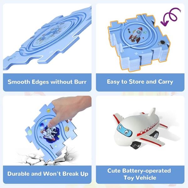 Set uključuje više dijelova staze koji djeci omogućuju jednostavno stvaranje različitih izgleda, poboljšavajući njihovu kreativnost i vještine rješavanja problema.