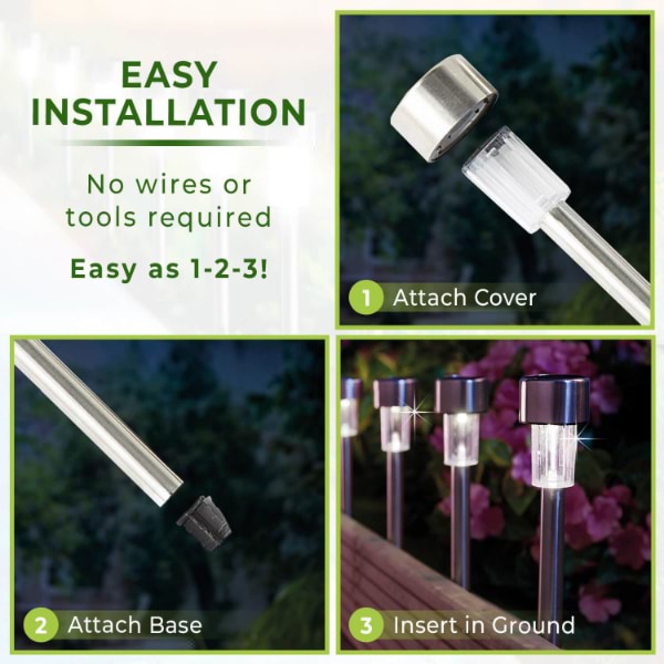 Bez žica, bez stresa! Jednostavno zabodite ova svjetla u tlo gdje god želite – savršeno za staze, prilaze ili cvjetne gredice.